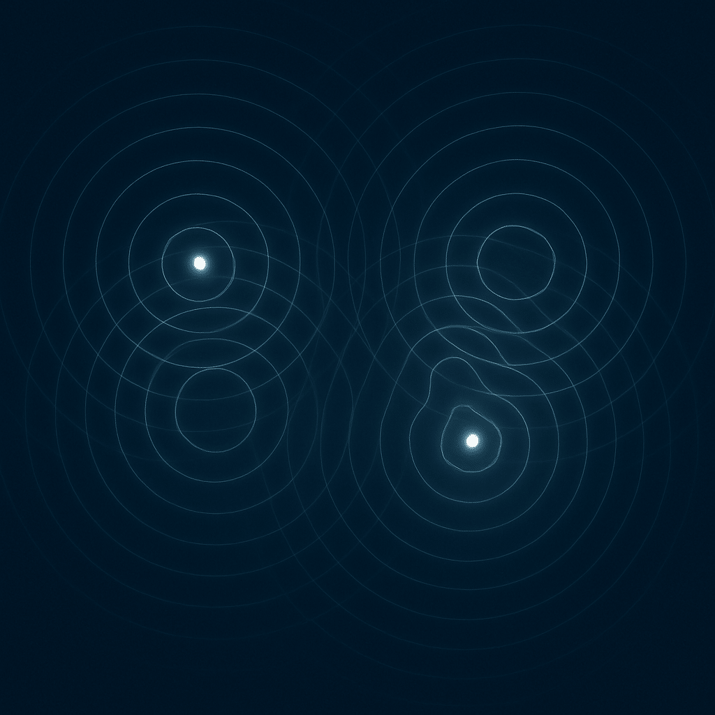 - Superpose localized waves: \(\Psi=\psi_A+\psi_B\) with envelopes \(e^{-\alpha r}\).